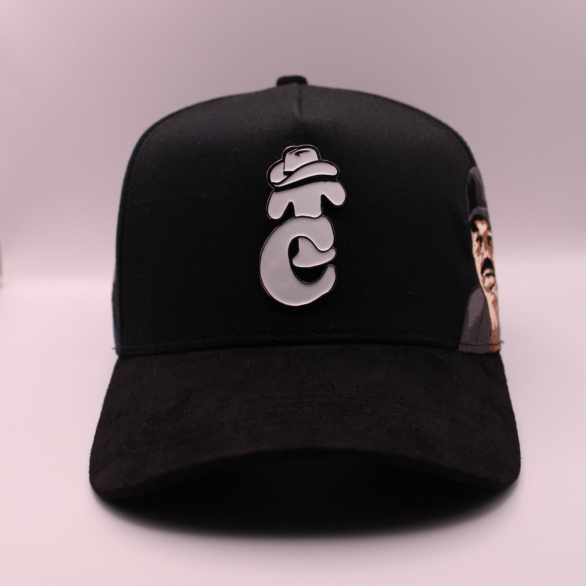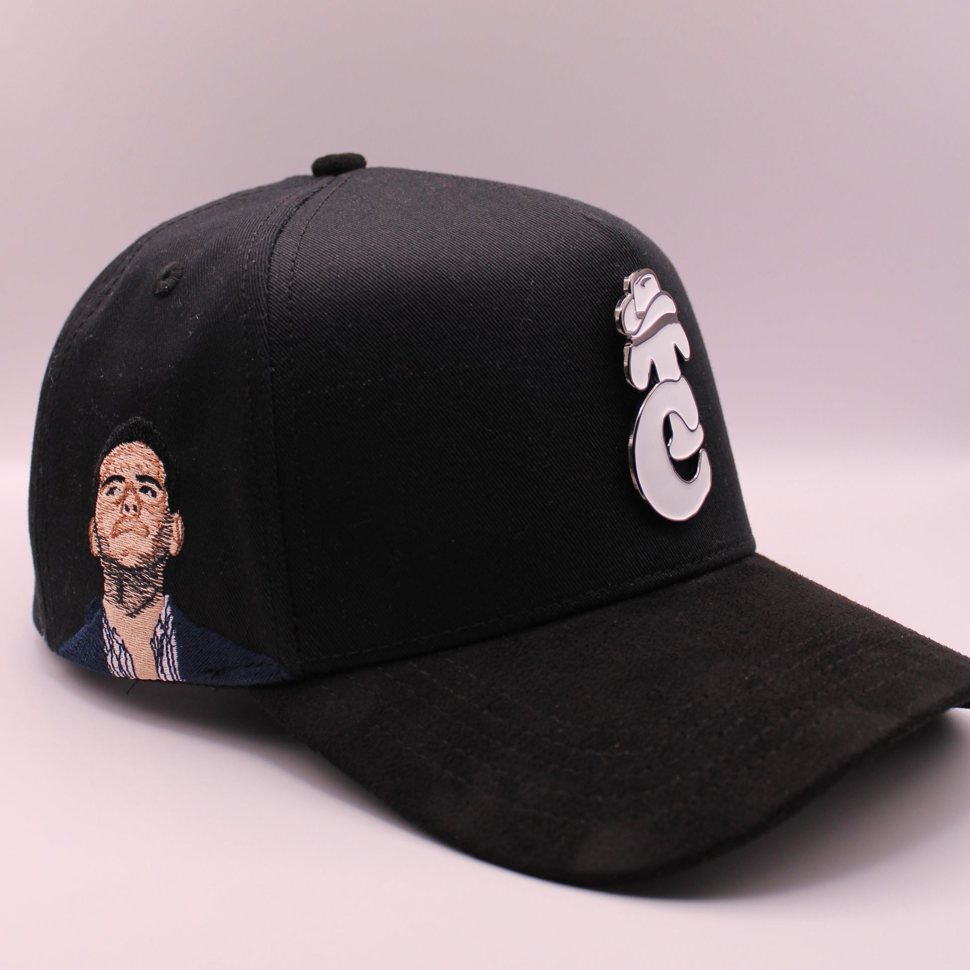 Jet‑black structured snapback with a polished chrome TC logo and embroidered legendary portraits on the sides; premium cotton twill, suede‑style curved brim, soft sweatband, and adjustable closure for a bold, limited‑edition look.